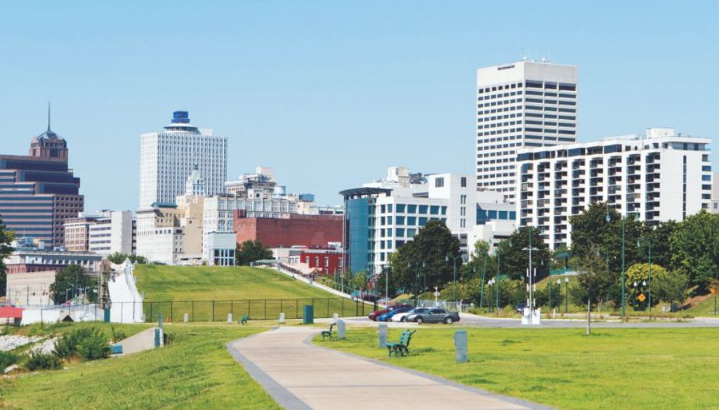 Memphis is definitely a river city, with bluffs towering over the Mississippi River and plenty of trails and park space to enjoy. Within the city limits you’ll find stately southern homes in East Memphis or new condo developments downtown, but most residents commute 30-40 minutes from outlying communities in Shelby County, like Germantown and Colliersville.